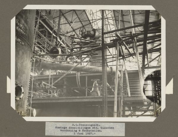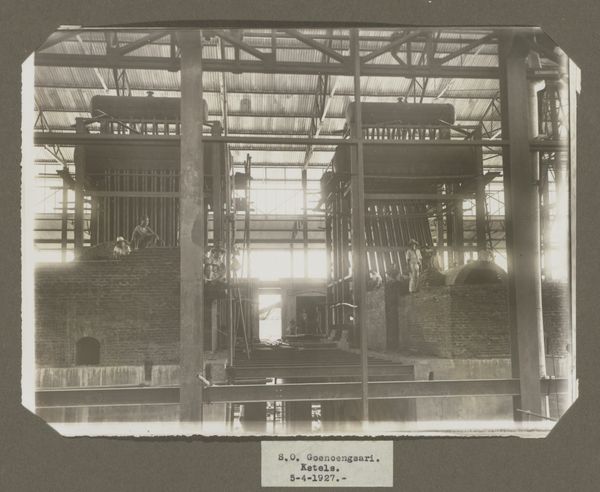 This photograph of ‘S.O. Goenoengsari. Ketels’ was taken on April 5, 1927, by an anonymous photographer. It depicts a sugar factory in Java, part of the Dutch East Indies, now Indonesia. We see the imposing boilers, or ‘ketels’, under construction, framed by the factory's steel infrastructure. The image speaks to the industrial ambitions of the Dutch colonial project and its heavy reliance on natural resources extracted from Java. The sugar industry was a major source of revenue for the Dutch, and the factory, an institution in itself, becomes a symbol of colonial power. Looking at the image, consider the unacknowledged labour required to build this factory and to operate these boilers. Researching sources from the colonial archives helps us understand the social conditions of workers in these factories, and to appreciate the human cost of sugar production.
