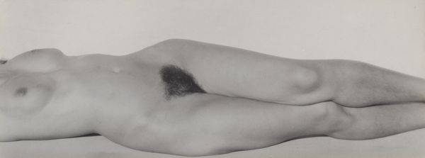 Editor: Here we have Alfred Stieglitz's "Rebecca Salsbury Strand" from 1922, a gelatin silver print. It’s striking how textural it is for a photograph, almost like sculpture. What are your thoughts on it? Curator: Considering this work materially, it's crucial to note the historical context. Stieglitz, known for his Pictorialist approach, embraced photography as a fine art, distinct from mere documentation. The gelatin silver print process, itself a product of industrial chemistry, allowed for sharp detail and a range of tonal values. Look at the even distribution of that grit-like substance across her skin! Editor: It reminds me of those gritty, high-contrast photographs from that time. Is the material and method a form of expression in itself? Curator: Absolutely. Stieglitz’s choice and manipulation of this industrial medium are significant. The application of grit, perhaps through darkroom manipulation, challenges the idea of photography as pure indexical representation. It pushes against traditional boundaries, incorporating elements of craft and tactile experience into what was considered a mechanical process. It invites us to consider the labor involved and the photographer's hand in creating the final image. Editor: So, the material and the process aren’t just means to an end, but actively shape the message of the artwork? Curator: Precisely. How the image was produced becomes inseparable from its meaning. Consider also the social context. Stieglitz championed photography during a period when its status as “art” was heavily debated. By manipulating the materials and emphasizing the process, he asserted photography’s capacity for artistic expression, reflecting the shifting landscape of art production and consumption in the early 20th century. What do you take from this knowing Stieglitz’s dedication to his craft and control of materials? Editor: Understanding his hands-on involvement gives me a deeper appreciation for the image. It feels less like a passive recording and more like a constructed object. I didn't think about photography having materiality in that way. Curator: Indeed. It's a powerful example of how examining materials and processes can reveal deeper insights into art.
