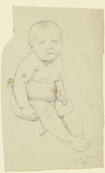 This sketch of a 'Zittende peuter', or 'Seated Toddler', was created by Willem Cornelis Rip, using graphite on paper. The initial impression is one of fluidity and transience, with the soft graphite lines creating a sense of movement. Rip’s emphasis on form is evident in his choice of medium and composition. The loose sketch-like quality of the graphite lends itself to the exploration of shape. We see the child's head rendered almost as a sphere, the body suggested by a collection of lines that intersect to indicate folds of clothing and posture. It is less about capturing a likeness and more about conveying an understanding of the child’s presence through simple, direct means. The sketch's open form, where lines trail off and shapes are incomplete, invites our active participation. It challenges the notion of art as a closed system, proposing instead a dynamic interplay between the work and the viewer.
