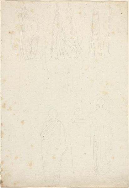 This small pencil sketch of two groups of figures was made by John Flaxman, a British artist active in the late 18th and early 19th centuries. Executed on paper, the artist uses a readily available material and a simple medium to explore the human form. There’s an incredible economy of means here: just a few lines are enough to suggest figures in various poses. In the group on the left, one seems to be reaching out to another, while the group on the right sits in a more huddled position. Flaxman was deeply involved in the Neoclassical style, which drew inspiration from classical antiquity, often emphasizing purity of line and form. The sketch exemplifies these characteristics, reducing human figures to their most basic forms while still conveying a sense of emotional depth. The ease and speed of drawing allowed Flaxman to quickly capture his ideas, and the work reminds us of the foundational importance of drawing in the history of art. It also challenges us to consider the value we place on labor and skill, especially when embodied in something as seemingly simple as a pencil sketch.