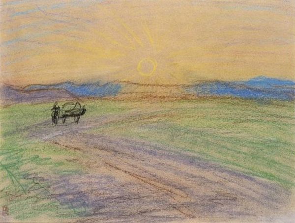 Theodor Philipsen painted this "Evening Landscape" in the late 19th or early 20th century. The horses, silhouetted against the setting sun, evoke a sense of pastoral calm, but also something more profound. The horse, a recurring motif throughout art history, carries a rich symbolic load. From its representation as a divine attribute in classical antiquity to its association with power and nobility in Renaissance portraiture, the horse transcends mere representation. Here, the image speaks of labor and the animal's patient service to mankind, a concept that links to images of burdened animals in antiquity. The presence of the rider—a figure both guiding and dependent on the animal—touches on the complex interplay between humanity and nature. There's a melancholy here, a quiet contemplation that stirs within us. It’s an echo of mankind’s relationship with nature, resonating deeply in our collective memory.