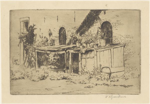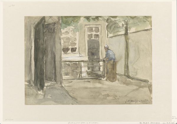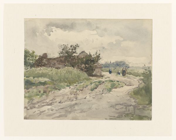 Wilhelmus Johannes Steenhoff created this watercolor, titled "Huisje te Higgo Vale," on paper. Notice how Steenhoff uses the fluidity of watercolor to capture the building’s dilapidated state. This technique reflects a broader artistic interest in capturing fleeting moments and atmospheric conditions. However, watercolor isn't just a passive medium, it requires a deep understanding of its properties. Steenhoff masterfully manipulates the water-based paints, allowing them to blend and bleed to create a sense of decay. The washes create the building's texture and form. This skilled handling elevates the medium beyond mere documentation, aligning it with the expressive capabilities of fine art. By focusing on such a mundane subject with such refinement, Steenhoff blurs the lines between traditional landscape painting and the emerging focus on everyday life. His choice of watercolor, typically associated with sketches, adds another layer of complexity, challenging conventional hierarchies within the art world. It invites us to consider how the value of art lies not just in the subject, but in the skill and vision applied to its creation.