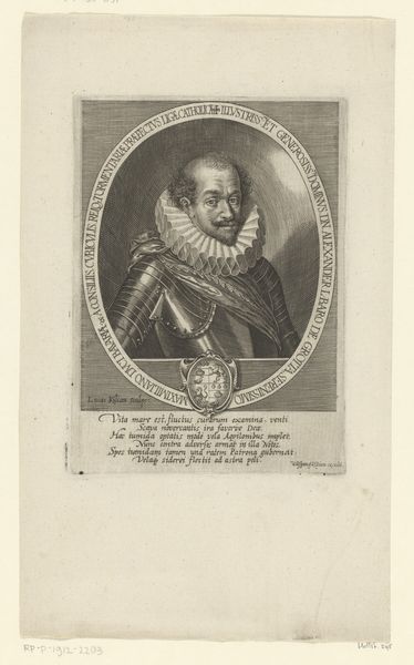 Matthias van Sommer’s engraving presents us with a portrait of Johann Gravis, Rector of Northeim, a figure of considerable societal standing. Created within a Northern European context, this portrait embodies the cultural values of the time, reflecting the subject’s status through carefully constructed visual cues. Gravis is encircled by an inscription celebrating him as a poet. His attire and composed demeanor speak to the importance of image and the performance of identity during the period. The Latin text accompanying the image positions Gravis within a classical intellectual tradition, aligning him with figures like Apollo, god of the arts and knowledge. The very act of creating and circulating such a portrait speaks to the dynamics of power and representation of the time. It prompts us to reflect on how individuals sought to shape their legacies and social standing through artistic means. What does it mean to immortalize oneself through art, and how does this reflect societal values?