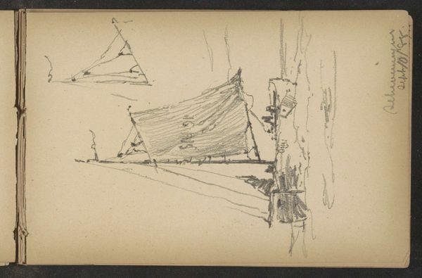 Curator: This intriguing pencil drawing is titled "Achtergevels van huizen aan de Warmoesstraat," which translates to "Rear facades of houses on Warmoesstraat." Cornelis Vreedenburgh created it sometime between 1890 and 1946. Editor: My initial reaction is that this work feels transient and understated, almost like a whispered observation. I can almost feel the texture of the paper through these delicate lines. Curator: That immediacy speaks to Vreedenburgh's impressionistic style; the swift, sketch-like rendering captures a fleeting moment in the cityscape. How might the material condition shape the view of the location portrayed? Warmoesstraat was, and arguably remains, at the heart of Amsterdam’s red-light district. Editor: It certainly frames the interpretation. Consider the contrast: a raw, almost disposable medium depicting architecture associated with the commodification of bodies. It subtly asks what the artist values depicting. What labour conditions would allow a moment like this to be drawn so quickly and casually? Curator: Precisely! It encourages reflection on visibility, whose stories get told, and how the very act of observing and representing such a street—usually framed by sensationalism and stigma—normalises and documents everyday realities. We could ask, does the choice of medium here invite reflection upon, or conceal, broader patterns of economic exchange? Editor: Right, it prompts critical analysis. The casual nature of the sketch is perhaps deliberately misleading, because the rapid impression captures also a reality. But what if we dig a little bit into the urban renewal processes of that era? Curator: Definitely, that’s where the historical dimension becomes so crucial. By positioning this sketch within socio-political currents, we are questioning not just what Vreedenburgh saw, but why, when, and, importantly, for whom this observation was rendered, expanding the scope of this artwork's significance. Editor: Absolutely, I'll definitely look closer now when I return to this drawing; there is far more to it than meets the casual gaze. Curator: Yes, indeed, and these rough lines invite viewers to find meaning within both the drawing's construction and the wider sociohistorical constructions within which its setting has come to be understood.