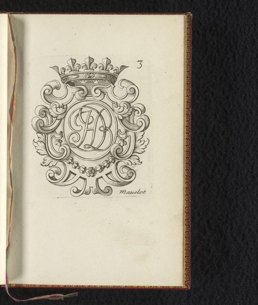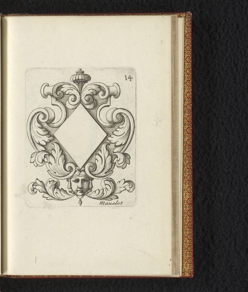 Curator: This is Charles Mavelot’s “Cartouche met schelp en parelranden,” an intaglio print, dating to 1685. Editor: My first impression is its intricate craftsmanship. The baroque detail and repetitive shapes create a very soothing visual rhythm. It makes me wonder what it would have been used to frame. Curator: Precisely! Cartouches of this era functioned as ornamental frames – think elaborate borders for portraits, mirrors, or even architectural elements. Consider the material constraints: the fine lines achievable through intaglio influenced the designs. Copperplates would need careful preparation and expert handling. Editor: The use of the shell and pearl motifs really speak to that era's love of ornamentation and classical reference, the shell evoking Venus and rebirth, while pearls have long been a symbol of purity and status. This elevates the idea of framing something ordinary to enshrining something precious. Curator: It's also about consumption; these prints disseminated design ideas to artisans and patrons alike. They democratized access to high style by circulating them on paper, rather than only as custom commissions. A furniture maker in Lyon, for example, could draw inspiration from Mavelot in Paris. Editor: Yes, the way such imagery then proliferated across Europe says a great deal about shared values and aspirations of the time, not just the display of wealth but also education and refined taste. I also find it poignant that the frame remains empty, a silent invitation to add something. Curator: Indeed, that openness highlights its core function: the industrial manufacturing and selling of possibility. It's not just an artwork; it's a blueprint. And from a manufacturing point of view it offers infinite reuse possibilities and interpretations. Editor: So much is communicated through these small images. Considering this artwork, it becomes evident that seemingly small prints carry a wealth of cultural and economic information about their time. Curator: Precisely. An exquisite example of mass customization within baroque design, where technique shaped distribution and consumption.