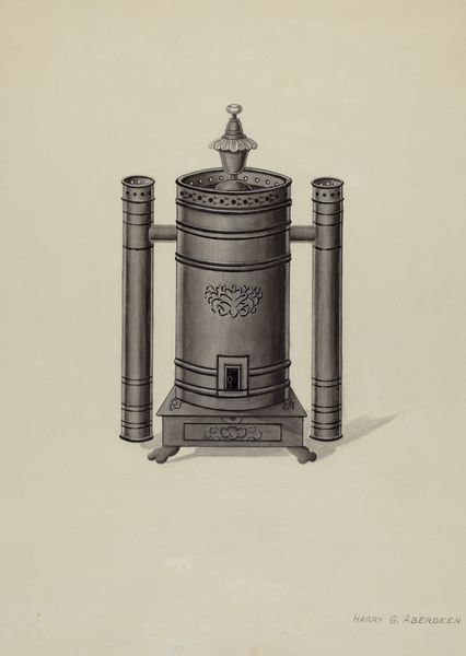 Einar Heiberg made this drawing of a stove, with what seems like pencil and watercolor. I love the careful observation here, a kind of loving, and almost obsessive focus on the everyday. Look at the blueish, grey paint that makes up the stove, how it seems to be both flat and dimensional, all at once. Heiberg is so interested in the stove-ness of this stove, that he meticulously renders it, but also sort of abstracts it, flattening the image in places and then adding detail in others. My eye keeps going to the little golden circles on each edge. They're like little suns, repeated over and over. They give warmth to the image, popping against all that grey. This makes me think of Giorgio Morandi, who also painted everyday objects and through repetition, rendered them monumental. Ultimately, art is about noticing the world around you, and about opening yourself up to the endless possibilities of what you see.
