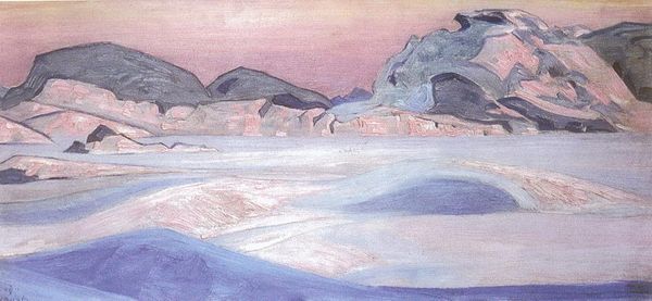 Editor: Here we have Milton Avery's "Oregon Coast," painted in 1947. The hazy colors immediately strike me – that muted pink sky and almost lavender water give it a dreamlike, softened feel. It's like seeing a landscape through a faded photograph. What stands out to you? Curator: It whispers to me, you know? It doesn't shout, doesn't demand attention. Avery wasn't about grand pronouncements. The simplicity is deceptive; look closer. He's reduced the coastline to its essence – a few shapes, blocks of color, capturing the feeling of a place rather than its precise topography. Does it make you feel a certain way? Like maybe you're holding something back that is a memory ready to appear? Editor: Definitely, there is that sort of memory, or impression of the real thing. Almost abstracting reality to get at a deeper meaning, if that makes sense. Curator: Precisely! It's post-impressionistic – capturing a subjective sensation rather than objective reality. The slightly crude impasto, those deliberate brushstrokes... what do they evoke? It feels like he worked quickly and intently. Perhaps he was capturing the transient beauty of the place and time as best he could. A specific question about its colors… did they catch your attention? Editor: They did, I kept thinking that they seemed intentional... there's no blue for the ocean, and the sky is pink. It felt bold but subdued at the same time. Curator: It’s like a melody played on muted strings. The pink is echoed throughout; he's created a unified harmony out of unexpected hues. It has that distinctive signature Avery style: simplified forms and that unconventional palette. Did this make you think differently about landscape paintings? Editor: Absolutely. I usually think of landscapes as these grand, sweeping vistas but Avery focused on something more intimate, almost like a personal memory. I have to admit I feel quite refreshed. Curator: Exactly, sometimes, it is the small and simple things that can mean everything. Thank you for sharing!