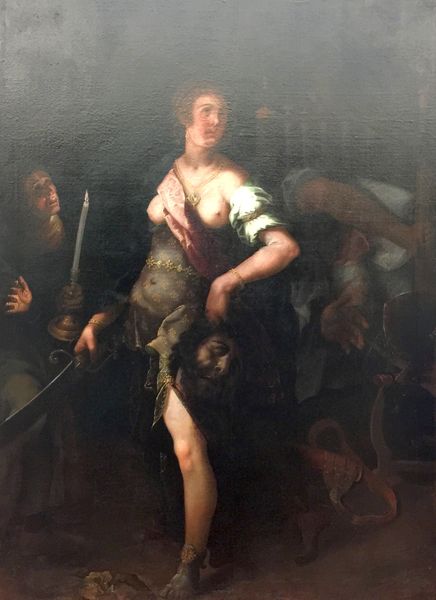 Editor: Looking at Gabriel Ferrier's "L'auto Da-fe," I'm struck by the drama and how painterly the application of oil paint seems to be. It evokes a visceral reaction. How would you interpret this piece? Curator: This painting pulls our attention to the stark realities of production and consumption inherent within representations of power. How were the materials – the oils, the canvas, even the models – sourced and utilized to construct this scene of subjugation? This piece allows us to confront the economic and social structures that not only permitted the historical event depicted but also enabled its representation through art. The dark colour palette might also imply at what labour cost these dark pigments have been produced. Editor: That's a fascinating point about the cost of the materials, considering what’s happening in the picture! So the way the artwork was physically produced informs its meaning. Curator: Precisely! Consider the labor involved in preparing the canvas, grinding the pigments, and the act of painting itself. Whose labor is valued, and whose is exploited, both in the scene and in the creation of the artwork? It also allows you to ask, which role do we endorse when contemplating this work? Who gains capital from these depictions and how do the represented individuals and environment suffer due to it? Editor: I see… It changes how I see art in general. It's not just about the image itself, but the story behind how it was made and what message that implies about the human condition. I hadn’t considered labor. Curator: Indeed. By interrogating the material conditions of its creation, we can gain a deeper understanding of its meaning and impact within its social and historical context. In this case of potential torture we could also reflect on who commissioned and funded these materials. Editor: Thank you. That's definitely given me a fresh way to consider the complexities of art and its relationship to society and wealth.