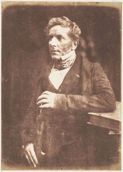 This photograph was made between 1843 and 1848 by the Scottish duo, Hill and Adamson. It is a calotype, an early photographic process, depicting an unknown man. In the early to mid-19th century, photography was more than just a new technology; it was a cultural phenomenon reshaping how people saw themselves and the world. The rise of photography coincided with growing social mobility and a burgeoning middle class in Europe. Photography provided a new means for individuals to document their lives and project their image to society. It democratized portraiture, which until then had been the preserve of the wealthy. The sitter's formal attire signals middle class respectability. Yet, as an art historian, the anonymous nature of the sitter is just as interesting. Who was he? What was his story? The details of his life may be lost to us, but through careful research into the archives of photographic societies and the social history of Scotland, we can shed light on the individual and the society that shaped him.