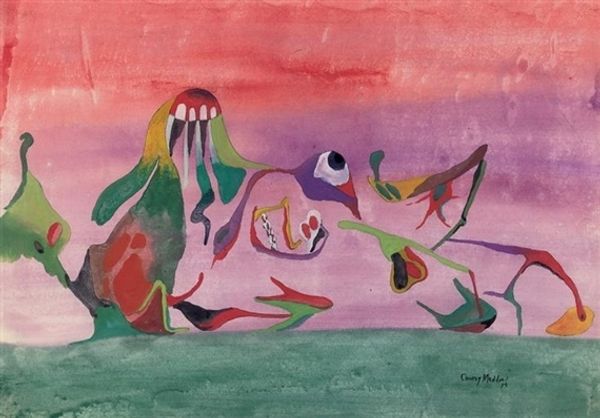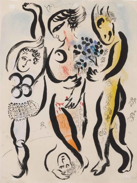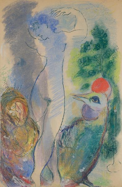 Ernst Ludwig Kirchner made "Farbentanz" with watercolor and ink. The title means 'color dance' - and the painting does feel like a dance. Kirchner's process here seems immediate, with fluid lines suggesting figures in motion. The colors are washed in, transparent, like watercolor does - blues, pinks, and yellows overlap, creating a layered effect. Look at how the ink lines define the figures, but also let the colors bleed through. It's like he’s capturing a fleeting moment, a glimpse of energy. One particularly striking area is where the blue figure overlaps the pink, creating a soft purple haze, a really nice surprise. Kirchner was part of the German Expressionist group Die Brücke, and you can see that influence here in the bold use of color and the raw, emotional energy. But you can also see a similarity to Matisse’s dancers. Kirchner invites us to see the world not just as it is, but how it feels.