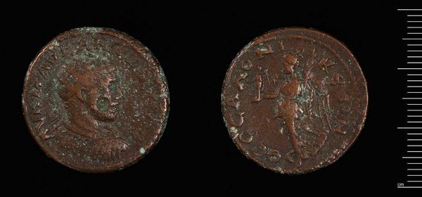 Editor: Here we have a Coin of Corinth under Antoninus Pius, a copper coin held at the Harvard Art Museums. It's quite weathered, but you can still see the details. What strikes me is how the material itself tells a story of time and use. What do you see in this piece? Curator: I see a powerful object lesson in materiality and power. Consider the labor extracted to mine the copper, the craft involved in its shaping, the economic system it represents, and how its consumption facilitated social interactions across the Roman Empire. Editor: So, you are saying it's not just about the emperor’s image, but about the entire system that produced and used the coin? Curator: Precisely. Its worth resided not only in its face value but in the network of production and exchange it enabled. The wear and tear even testifies to its circulation within the Roman economy. Editor: That's fascinating. I never thought about a coin in those terms. Curator: Seeing art as a product of material processes unveils the human labor and socio-economic structures embedded within.