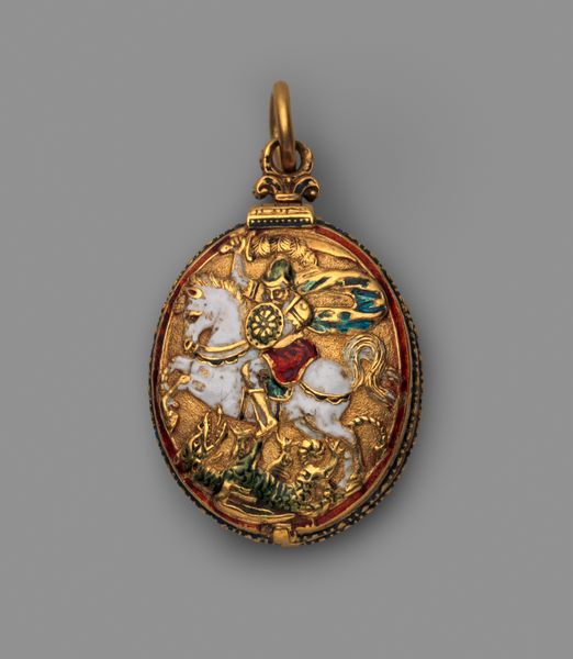 Curator: Here we have a beautiful metal relief sculpture called "The Institution of the Rosary," created in the 16th century by Jacopo Sansovino. You can find it at the Metropolitan Museum of Art. Editor: My first thought is one of incredible labor, it seems that a lot of time must have been dedicated to produce the sculpture. Curator: Indeed. The iconography is dense. The Virgin Mary, holding the Christ Child, sits enthroned while saints and perhaps donors receive rosaries from her. The Rosary itself is a potent symbol, connecting the earthly and divine realms through prayer and contemplation. Editor: The metalwork itself—what kind of metal are we thinking?—demands careful attention. You know, chasing, engraving. Who was the artist crafting this? What were their working conditions? Was it a commissioned piece dictated by wealthy patrons, reflecting power dynamics? Curator: Sansovino was, of course, a noted sculptor and architect of the Italian Renaissance. The precise method for making it might involved wax-casting methods, which may allowed multiples to be made in some size differences. The commission probably came from the circle of the wealthy Doge families in Venice or someone in contact with them. This would have added a significant layer of meaning and authority to its possession. The piece embodies notions of grace and divine blessing through its presentation of these symbols. Editor: Exactly. So, think about how the cost of the material and skill impacted it, in connection with the message. This wasn't just about piety; it was also about demonstrating financial capability and, implicitly, elevated social status through the acquisition and display of such a labor-intensive object. The Virgin here signifies not just maternal love but also the control that commissioner sought of the common population. Curator: I appreciate you highlighting that tension. These devotional images were undoubtedly meant to inspire, but the patronage undeniably intertwined the sacred with worldly power. Editor: And even the repetitive action implied by the rosary resonates. A sort of spiritual factory churning out absolution? I would argue the object’s value resides as much in those socio-economic considerations than in a vacuum of devotional belief. Curator: Interesting, so this lens shows me that the statue is also a perfect relic that holds multiple meanings according to the different viewers. Well, looking at its design once again with all our considerations of symbols, the use of metal, and historical context, "The Institution of the Rosary" presents new depth each time. Editor: Yes, analyzing both labor and symbolism grants the sculpture richer meaning beyond what's visible at first sight, unveiling social dynamics of the time.