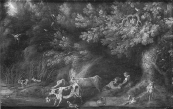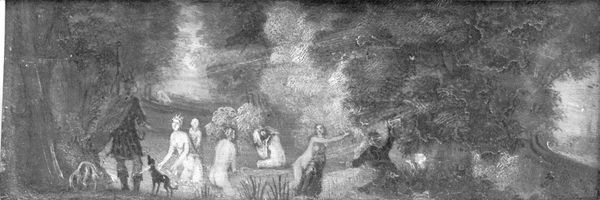 Curator: Looking at this canvas attributed to Christoph Ludwig Agricola, titled "The Flight into Egypt" and created sometime between 1682 and 1719, I am drawn into a narrative steeped in symbolism. It presents a distinct Baroque landscape executed in tempera, part of the collection at the Statens Museum for Kunst. Editor: My first impression is one of immense fatigue, despite the inherent drama of the scene. All I feel is exhaustion. You can practically taste the dust and the quiet desperation in the air, though the landscape itself feels more brooding than overtly menacing. Curator: Exactly. The history of the Flight into Egypt is replete with allegorical significance—depicting displacement, refuge, and the journey toward spiritual preservation, commonly evoked during times of uncertainty. Note how Agricola contrasts the figures' immediate struggle against a backdrop of vast, perhaps indifferent, nature. Editor: The darkness, too, lends a quality almost like that of a dream... or a nightmare, depending on your interpretation of salvation. Does the artist employ color symbolically or emphasize the figures with specific symbolic attributes? Curator: Agricola leverages the shadowy tempera medium to emphasize themes of uncertainty and vulnerability inherent to the biblical narrative. Light strategically guides our attention, focusing on the Madonna and Child as beacons of hope against this natural world. Consider how Joseph leads the way with determined resoluteness as the supporting, yet unnoticed, guardian. Editor: He looks like a shadow himself, swallowed by a cloak and the burdens of the unknown. Makes me wonder about all the uncelebrated Josephs out there in the world...The palette choice amplifies that, too; it’s muted as if seen through gauze. Curator: Indeed, that artistic choice draws our attention toward not just the events themselves, but to the deep personal and psychological toll taken on those who make history, those seeking to secure a safe future for their kin. Editor: A sombre meditation, beautifully wrought. Agricola prompts me to think about who history often forgets. Curator: Yes, leaving me with a sense of how journeys and relocations echo universal threads of humanity.
