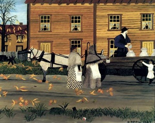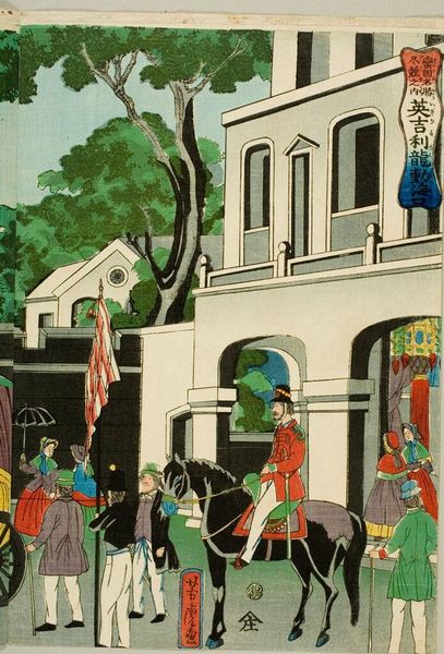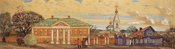 Curator: Here we have Boris Kustodiev's painting, titled "Catching of Homeless Dogs." Painted with oil, this work brings a captivating genre scene to life. Editor: Immediately, I'm struck by the dynamism of the composition, a sort of organised chaos in the heart of the city with a palpable feeling of harsh everyday life. The texture of the oil paint contributes significantly to that rawness. Curator: Indeed, if we look closely, Kustodiev really emphasizes the texture. He presents what seems like the everyday life and labor within Russian society, making visible a system and a structure and its interaction with those at the lower end of its social hierarchy, such as the people responsible for the captured dogs. The dog-catching trade is shown, but Kustodiev allows us a glimpse into urban trades, the materials that mark daily activity, and the types of exchanges involved. Editor: It certainly goes deeper than a surface-level depiction. Focusing on the symbols though, look at that cage, the bars representing captivity but also an interesting social paradox; shelter through capture. The city itself acts as a character in this theatre, a stage where humans, animals, and their stories all intertwine. The towers hint at higher orders and spiritual realms set against the crude everyday actions below, too. Curator: That interaction with spirituality juxtaposed with earthly survival echoes in the physical act of painting. The strokes and colors that Kustodiev uses remind the viewer of what's taking place; materials and humans collide. From where does his value system emerge when faced with depicting what the underbelly of life entails, who the individuals caught at the hands of others are? How does this influence how society is run? Editor: So much of the painting directs us back to these deeper ideas and it evokes such potent symbolic narratives—oppression, hope, struggle, resilience; such a layered piece of social commentary through its imagery! I was pulled in, in an almost visceral sense of time and location. Curator: I agree completely. The painting leaves us considering the ways that urban systems are constructed around its inhabitants and resources, both animal and human. The making of the city is just as revealing as the city itself. Editor: For me, the genius lies in Kustodiev's ability to encapsulate such sprawling human themes within such a singular, unforgettable visual statement.