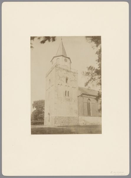 Editor: So, here we have "Gezicht op de Hervormde Kerk te Sleen," a photo taken around 1903. The tones are soft, almost dreamy, but the church itself appears quite solid and simple. What stands out to you when you look at it? Curator: I notice immediately the materiality, how the very act of creating this photograph implicates the monument itself. Think about it – what was the labor involved in preparing the photographic materials? Who was handling them, and whose consumption was this image designed for? This image is a product of its time, materially, socially. Editor: I see what you mean. The materials involved, from the chemicals to the paper, they tell a story of industry and technological advancement. Does the fact that it depicts a church change how you see its material context? Curator: Absolutely. The church, ostensibly the subject, also embodies material processes, doesn’t it? Quarrying the stone, the craftsmanship of its construction, even the act of maintaining it... these are all labor-intensive practices inextricably linked to the economy and community of Sleen. The photograph then captures not just a building, but a convergence of materials and the labor embedded within them. Editor: So it’s not just about the church’s architectural or religious significance, but its physical existence and the human effort behind that existence. Curator: Precisely. And the photograph serves as a document of all of this, but is also itself a produced object for potential mass consumption that perpetuates ideologies. It blurs the lines between documentation, artistry, and consumption. Editor: That gives me a whole new way of looking at not just old photos, but the buildings that outlast them! Curator: It’s about seeing art, architecture, and photography as interconnected expressions of material culture. A valuable way to read the image and the object together.