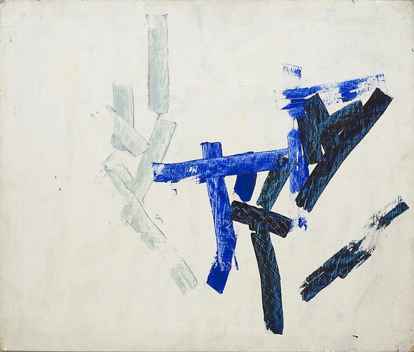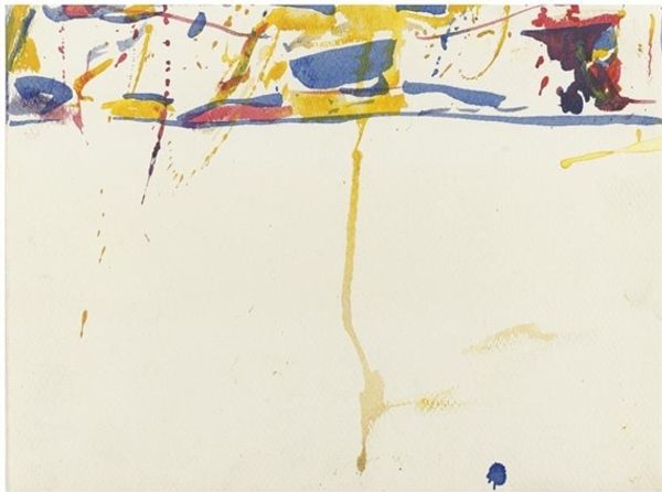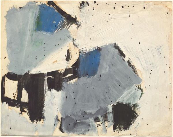 This untitled piece, made by Franz Kline, is one of those works that really makes you think about what painting is, or could be. The way Kline uses these big, bold strokes of black paint, especially the contrast between the dense, opaque areas and the paper showing through, it’s like he’s wrestling with the surface, trying to build something, maybe a structure, or maybe just a feeling. Look at how the paint clumps and drags in the dark blue section of the composition. It's not just about applying color; it's about pushing the paint around, letting it have its own say in the matter. The open brushstrokes remind me a little of Robert Motherwell, but Kline’s got this raw energy, this feeling of immediacy that's all his own. It’s like he’s saying, "Here’s the mess, here’s the process, take it or leave it."