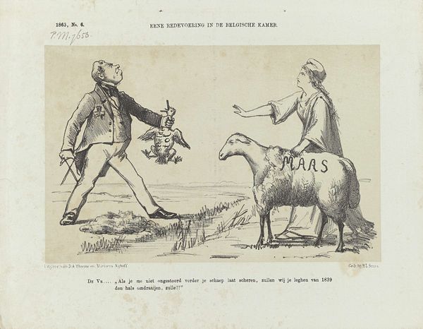 This satirical print of 1884, by Johan Michaël Schmidt Crans, uses lithography to make its point. The lithographic process—drawing on a stone with a greasy crayon, then using ink to transfer that image to paper—allowed for relatively quick and inexpensive reproduction, a perfect medium for political commentary. The stark black lines on the white ground emphasize the gaunt, almost skeletal cattle representing the government’s empty treasury. Note the contrast between the detailed rendering of the emaciated cows and the more sketch-like depiction of the figures observing them. The artist, or perhaps the printer, would have needed skilled hands to create the image and pull the prints. The print's critical message about government finances reflects the economic anxieties of the time, and it's a potent reminder that even seemingly simple images can be deeply embedded in social issues of labor, politics, and consumption. By understanding the materials and the making, we gain a fuller appreciation of this work, challenging traditional distinctions between fine art and craft.