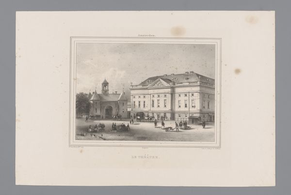 Paulus Lauters rendered this view of the Koninklijke Schouwburg. The theatre, a cultural epicenter, becomes a stage itself, framed by waiting carriages. It echoes classical Greek theaters, symbols of communal ritual and catharsis. Consider the proscenium—the 'mask' before the stage, a term derived from the Greek word for face. This evokes a sense of unveiling, both literally for the play and psychologically for the audience. The theatre facade itself is austere, yet inviting, as if promising access to another realm, a collective dreamscape. The carriage motif, a mode of transport to the theatre, is reminiscent of the chariots of ancient gods, carrying mortals toward enlightenment. Much like these ancient gods, audiences arrive at this architectural temple, hoping to experience psychological and emotional transformation. This building becomes a cultural symbol, resurfacing through time, forever shifting in meaning, from sacred ritual to dramatic art.