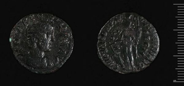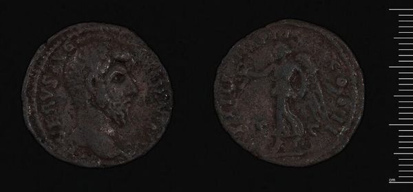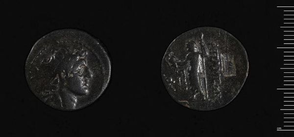 Editor: Here we have a coin of Azes II of Scythia, Sakastan, its weight measures at 9.59 grams. It appears well-worn, imparting a tangible sense of history. What symbols do you notice? Curator: Observe how Azes II, a king, chose to represent himself and his power. What cultural values do you think the standing figure on the reverse might embody? Editor: Perhaps strength and leadership? Curator: Indeed, but also consider the transmission of power, the sacred, and the ruler’s role as intermediary. These images speak to a complex interplay of cultural memory. Editor: It's remarkable how much history can be contained in such a small object. Curator: Precisely, it serves as a potent reminder of the enduring nature of symbols across time.