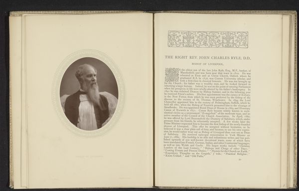 This is a portrait of John Edwards by Thomas Annan, made sometime in the mid-19th century, using a photographic process. Annan, working in Scotland, documented the faces of his time, capturing the likenesses of both the everyday person and prominent figures such as Edwards. Edwards's gaze, framed by his clerical collar, draws us into the complex relationship between religious authority and individual identity during this period. The stark contrast of light and shadow in Annan’s photograph speaks not only to a visual aesthetic, but evokes the moral and social landscape of Victorian society. Consider the weight of expectations placed on religious figures like Edwards, who navigated the shifting currents of faith, community, and personal conviction. Annan's choice of photographic medium itself—a relatively new technology at the time—mirrors the dynamic interplay between tradition and progress. The portrait invites reflection on how individuals shape and are shaped by their roles in society. It asks us to consider the expectations, and the emotional and personal dimensions of leadership and faith.
