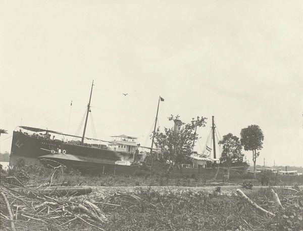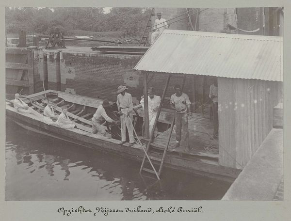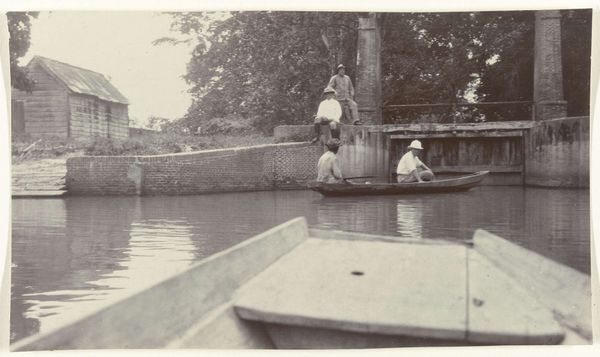Editor: Here we have an arresting photograph titled "Veranda aan beek", captured sometime between 1903 and 1907 by an anonymous artist. The scene has an almost dreamlike quality with its blurred focus and composition dominated by a waterway and a gathering of figures on a stilted building. It’s quite intriguing. What do you see in this piece? Curator: This photograph offers a rich perspective into early 20th-century colonial landscapes and social dynamics. Considering its historical context, I observe how it simultaneously documents and constructs a specific image of life within a colony. The architectural structure, the arrangement of people, the contrast in attire—all subtly suggest a hierarchy, reflecting power structures of that era. Do you notice how the camera subtly positions us as observers *of* this colonized scene? Editor: Yes, now that you mention it, it feels almost anthropological, like a deliberate recording of a culture from an outsider's perspective. It almost feels as if the staging invites viewers to contemplate the distance – both physical and societal – between the viewer and the photographed subjects. Curator: Precisely! It prompts questions about the purpose and the intended audience of the image. Was it aimed to educate, to create exoticism, or perhaps to serve colonial administration? Photographs like these played a vital role in shaping public perceptions of colonized lands and peoples. Examining the cultural assumptions embedded in the image can help us to challenge these perspectives today. Editor: It’s fascinating to think about how one photo can contain so much loaded historical meaning! Thanks for unpacking that. I definitely view it with new eyes now. Curator: My pleasure! Analyzing art through a historical lens shows us how interwoven social and cultural histories are within each piece, even a seemingly straightforward image.