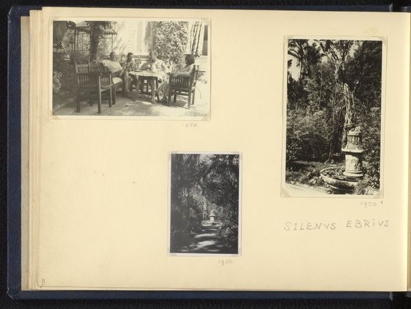 Editor: Here we have Norbert van den Berg's "Three Photos of the Garden of Villa Tritone, Sorrento," taken between 1949 and 1950, captured in black and white photography. The image is striking with its series of archways and gardens, almost like glimpses into another world. What stands out to you in these images? Curator: The archways, draped with vegetation, certainly create a powerful visual language. Consider the symbolic weight of a garden itself - traditionally representing paradise, a retreat, or even a sacred space. And within that space, the archway functions as a threshold. Does it not suggest a transition, a rite of passage? Notice how the eye is led through each frame, deeper into this seemingly private realm. Editor: That's a great point about the symbolism! The repetition of the archway does give the feeling of moving into a sacred or private area. I guess the eye is moving from darkness into light too, since the figures at the far end are illuminated? Curator: Precisely! Note also how the black and white medium elevates the play of light and shadow, amplifying the symbolic contrast. Ask yourself, what is being revealed, and what is being concealed? Also, what does it mean that the classical statues are present? Do they represent another passage? Or is something being remembered here? Editor: That contrast really emphasizes the sense of mystery and also suggests a longing for the past. What kind of "cultural memory" might van den Berg be referring to? Curator: He perhaps intends the classical ideals – harmony, order, beauty – embodied by the statues and formal garden design, juxtaposed with the encroaching natural world, or with the recent ravages of WWII. It begs the question, is humanity tending the garden of civilization, or is the garden reclaiming it? Editor: I see. The formal and natural in tension! I hadn't considered how photography also plays into "memory". This gives me a lot to consider. Thanks! Curator: My pleasure. There is so much layered in such deceptively simple images.