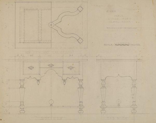 Here we have Hans Westendorff’s ‘Drawing of Table’, likely made with pencil on paper. I love the idea of a drawing *of* a table, rather than *on* a table. The whole thing is a process, a set of plans. The drawing has a light touch, a lot of space around the form, and includes the measurements so the table can be made to scale. The artist’s hand is visible in the gentle unevenness of the lines. It makes me think about process and iteration, like when I’m working on a painting and trying to figure out the composition. The lines, especially the curves around the edge of the table, aren't quite perfect, which is lovely. There’s a parallel here with the way conceptual artists like Sol Lewitt would create sets of instructions for a work to be made. It’s all about the conversation, the exchange of ideas. I love the ambiguity of this drawing, that it could be both a plan and a work of art in itself.