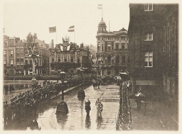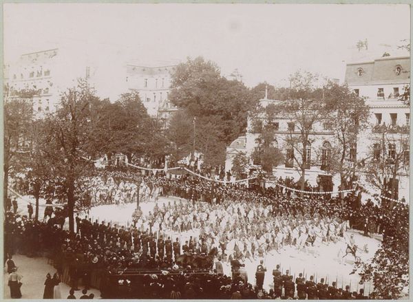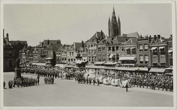 This photograph, taken on March 27, 1934, captures the funeral procession of Queen Emma in Delft, though the photographer remains anonymous. I am immediately drawn to the way the dense crowd is captured as masses of dark marks, a textural contrast to the hard architectural lines of the church behind. There’s a somberness in the grayscale, a removal of colour that matches the solemnity of the event. But it’s the granular detail that really gets me, you can almost feel the crispness of the air, the weight of the moment etched into each figure. Look at the detail on the edges of the buildings, those houses that are slightly blurred in the background. The effect is achieved through the use of light and shadow, creating a sense of depth, a visual poem on grief. The way the scene is framed recalls Walker Evans' documentary style, a similar commitment to capturing the essence of a moment, unvarnished and true. It reminds me that art, in any form, is about bearing witness.