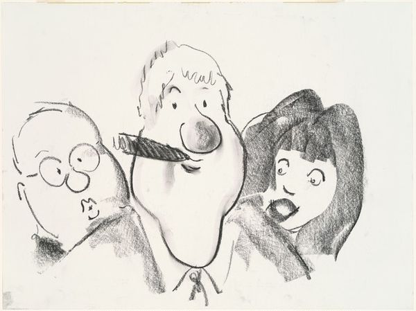 Curator: Looking at this work, I find myself drawn into the complex relationship between political caricature and cultural memory. Editor: My first impression is one of biting wit. The exaggeration is almost cartoonish, reducing these historical figures to almost absurd proportions, all sketched in rather simple graphite on paper. Curator: Indeed. What we have here is a graphite drawing titled "President Bush and Golda Meir," dating back to 1999, created by Pat Oliphant. Oliphant's caricatures were known for their sharp commentary, often challenging political norms through exaggerated features. It feels deeply entrenched in a specific moment in history, doesn't it? Editor: Absolutely, the distortions definitely push buttons. But it makes me think, what’s the social role of this kind of pointed visual rhetoric? Does this type of exaggerated representation serve as critique, or does it fall into harmful stereotypes, playing on existing prejudices? I mean, look at the noses! Curator: Well, I believe that, although harsh, the use of caricature helps codify how public figures are remembered, turning individuals into symbols laden with meaning. Take, for example, the exaggerated facial features, the imposing noses—in caricature, they are used to suggest something about these individual's perceived personality and influence in the geo-political realm. Editor: But does that kind of visual shortcut not oversimplify very intricate historical dramas? The problem I often see with political cartoons is how reliant they become on immediate, sensational reactions rather than substantive, long-term analysis of political players. Curator: But perhaps their value lies in capturing the public mood, revealing anxieties and social attitudes of the time, a way to question authority or reflect cultural sentiments in a visually accessible way, which echoes far longer than fleeting political feuds. Editor: It certainly prompts a strong reaction, that’s for sure. And it’s important to reflect on the potential power, and pitfalls, of these representations that take center stage in shaping collective consciousness. Curator: Indeed. A potent reminder of art's ongoing engagement with our public personas and its capability to influence lasting impressions, a cultural touchstone, for better or worse.
