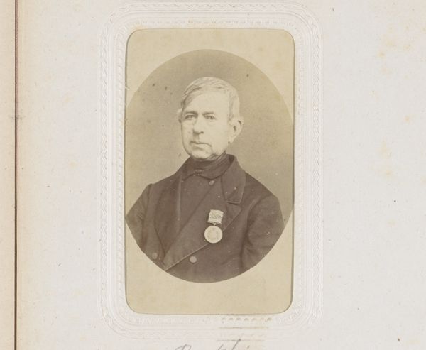 This is a photograph titled "Portret van een staande jongen" by Jules Géruzet. The sepia tones and the classical framing create a sense of historical distance, yet the young man's gaze draws us in. Consider the structure of this portrait. Géruzet uses a formal composition, emphasizing the sitter's upright posture. His coat, with its strong lines and contrasting trim, creates a visual anchor, balancing the ornate table beside him. The photograph is a study in contrasts: the softness of the young man's hair against the rigidity of his attire, the smooth backdrop against the textured fabric. This play with form destabilizes any straightforward reading. Is it a celebration of youth, or a commentary on the constraints of societal expectations? The photograph is a sign, open to interpretation, inviting us to question the codes of representation and meaning that it embodies.