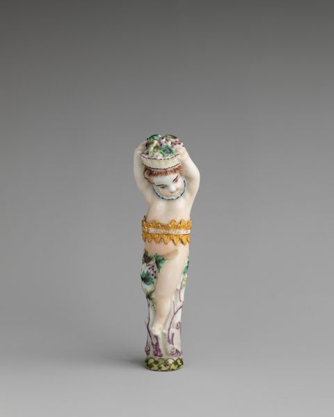 This is an Infant Bacchus perfume bottle made of soft-paste porcelain at the Chelsea Porcelain Manufactory in England in the mid-18th century. During the 1700s, London became a hub for luxury goods. This bottle gives us a sense of the collecting habits and decorative tastes of elite society during the period of the Enlightenment. Its existence speaks to the growth of manufacturing and international trade, but also to the visual culture of collecting and display. The fine porcelain material came at great expense, reflecting the rise of European aristocratic collecting culture that took inspiration from antiquity. Perfume bottles became extremely popular during this period, often decorated with classical motifs and symbols of wealth and status. The figure of Bacchus, the Roman god of wine, ecstasy, and fertility, would have appealed to collectors who saw their own privileged lifestyles reflected in classical mythology. By researching the history of porcelain manufacturing, we can learn more about the culture of collecting and display in 18th century England.