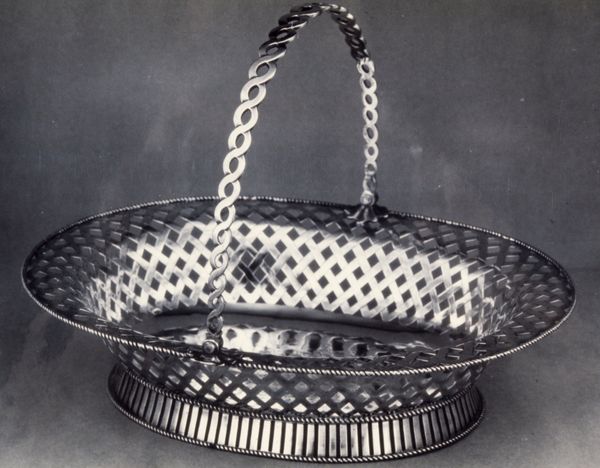 This sweetmeat basket was crafted by Burrage Davenport, and is an example of silversmithing at its finest. The material, silver, has a long history as a precious metal, and signified wealth and status. Look closely, and you’ll see the intricate woven design of the basket. This was created by drawing silver into thin wires, then carefully interlacing them – a labor-intensive process demanding great skill. The handle, too, is twisted from multiple strands, adding to the basket's delicacy and refinement. This level of detail speaks to a highly specialized workshop, where artisans like Davenport could dedicate themselves to mastering the techniques of metalworking. Sweetmeats, or candied fruits, were luxury items in the 18th century, and the basket would have been a showpiece on a wealthy table. This object beautifully illustrates the interplay of materials, making, and social context. It’s not just a container; it's a statement about the value placed on both the contents and the craftsmanship itself.