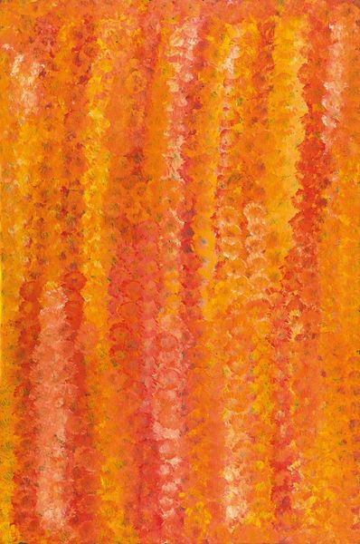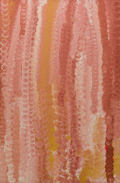 Emily Kame Kngwarreye made Desert Flowers using acrylic paint on canvas. The painting consists of long vertical lines of clustered dots, giving texture to the surface. Looking at the material quality of this work, the acrylic paint lends itself to vibrant color. The repeated dotting technique is rhythmic, almost meditative. Each dot is a single gesture, a unit of labor. The cumulative effect is a powerful expression of place. Kngwarreye belonged to the Anmatyerre people. She lived and worked at a remote outstation in the Northern Territory. Although she only began painting on canvas in her late seventies, her work quickly gained national and international recognition. Her paintings are deeply rooted in her cultural background and connection to the land. The subject matter of Desert Flowers, like much of her oeuvre, references the Australian desert landscape and the cycle of the seasons. Ultimately, this work reminds us that art isn't just about individual expression; it’s also about cultural knowledge and collective experience.