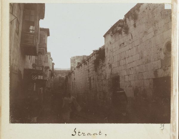 Editor: This is "Joden bij de Klaagmuur, Jeruzalem," or "Jews at the Wailing Wall, Jerusalem," an albumen print by C. & G. Zangaki, sometime between 1870 and 1895. The sepia tones and the rough texture of the wall are very striking. What stands out to you? Curator: For me, the interest lies in understanding how the very act of creating this image transforms reality. Think about the labor involved: the mining of materials for the photographic process, the journey to Jerusalem, the establishment of a studio, the staging, and the very specific viewpoint. It frames these people, their devotion, for consumption, packaging, and perhaps even altering the site itself into a backdrop. Editor: So, you're saying the photo itself is almost an imposition on the scene? That the making of it, and how it would be sold, alters what we're seeing? Curator: Precisely. We're not simply witnessing a moment of piety. We're looking at a commodity manufactured for a Western audience, capitalizing on Orientalist tropes. Who owned the land? Who controlled access to these holy spaces and materials? And what does it say about the market for such images at this time? How was labour distributed in its creation? Editor: That shifts my understanding entirely! It's less about a captured moment, and more about the socio-economic system making it. Curator: Yes! Consider how the albumen print itself - the material and chemical processes – contribute to its meaning. This particular medium helped produce images intended for mass distribution and consumption. Editor: So, we’re not just seeing a photograph, but a physical artifact of a complex historical moment. Thanks so much. Curator: And we need to keep questioning what material relations, exchanges, and systems the existence of this artwork implies. Very important.