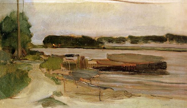 Camille Corot created this oil on canvas painting, ‘The Tiber near Rome,’ sometime in the mid-19th century. The landscape is anchored by a tranquil expanse of water that dominates the lower half of the composition. The river serves as a mirror, reflecting the soft, diffused light of the sky above. Note the gentle gradations of tone. The earth is rendered in muted greens and browns, creating a sense of depth and recession. Corot’s brushwork emphasizes the subtleties of light and atmosphere over sharp, defined forms. The soft edges and blurred details evoke a dreamlike quality, a hallmark of the artist’s style. This approach aligned with contemporary ideas about subjectivity and the importance of personal experience. Consider how Corot uses color and light to create a sense of harmony and balance, inviting us to contemplate the beauty and serenity of the natural world.