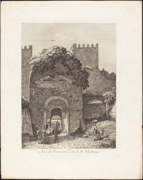 Hubert Robert created this etching, "Le Temple Antique," capturing a scene laden with historical echoes. The prominent archway, surmounted by a cross, immediately evokes both Roman triumph and Christian faith, a potent juxtaposition emblematic of cultural superimposition. The arch, initially a symbol of imperial power, finds itself repurposed, crowned with a symbol of spiritual authority. One recalls similar arches throughout Europe, each telling a tale of conquest, adaptation, and rebirth. Notice how the ruin is inhabited, suggesting continuous cycles of decay and renewal, reflecting the eternal dance between humanity and time. This image stirs deep within our collective memory, reminding us of the layers of history, constantly revisited, reinterpreted, and eternally present. It presents a psycho-geographic landscape that speaks to the past and present, revealing the enduring power of symbols across time.
