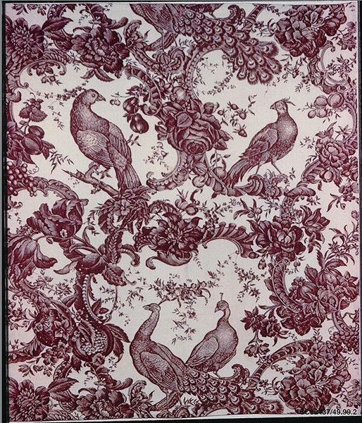 This is a panel, likely from the 18th or 19th century, printed with dye on cotton, though the artist who made it is unknown to us. The images on the fabric depict scenes of leisure and pastoral life, presenting an idyllic view of the world. Woven into this panel are complex histories of trade, labor, and cultural exchange. Cotton production, especially in the 18th and 19th centuries, was deeply connected to colonialism, slavery, and the exploitation of labor in the Americas and India. Panels such as this one played a role in shaping perceptions of wealth, taste, and social status. The color, the imagery, the textile itself, all speak to the circulation of goods and the intertwined histories of Europe and the rest of the world. This panel reminds us to consider the unseen hands that produced the goods we consume, and the stories they tell.