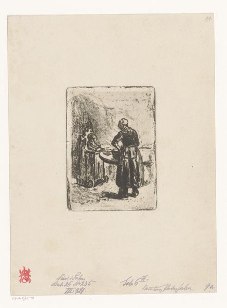 This etching, "Two Children with a Children's Print," was made by Jacob Taanman. Born in 1836, Taanman was part of a generation navigating rapid social changes and the rise of industrialization in the Netherlands. Here, two children huddle together indoors, poring over what seems to be a newspaper, perhaps a special children’s edition. Their faces are etched with a seriousness that belies their youth, prompting us to wonder about their world. What are they reading? What futures might they imagine for themselves? During Taanman’s time, childhood was being reshaped by new ideas about education and innocence, yet poverty often forced children into labor, prematurely aging them. This print invites contemplation about the lived experiences of children in the 19th century. It subtly questions whether they were truly shielded from the adult world, or if they were, in fact, early witnesses to its complexities.