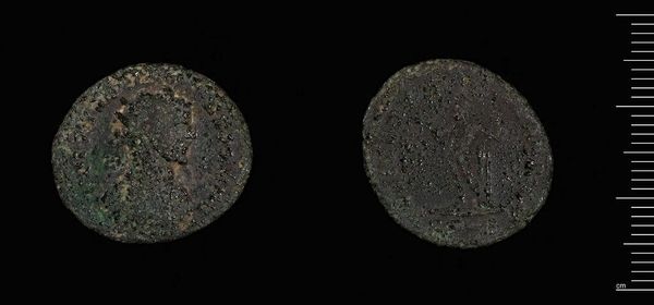 Curator: This is a Coin of Sardis under Gallienus, conceived during Salonina's time, residing in the Harvard Art Museums, a bronze piece weighing 7.3 grams. What are your initial thoughts? Editor: Well, the first thing that strikes me is the texture. It's heavily patinated, almost obscuring the imagery. There’s a kind of raw, earthy quality to the surface. Curator: That texture speaks to its history, doesn't it? Consider the labor involved—the mining, smelting, striking. This coin represents a whole system of production and exchange. Editor: Absolutely. The circular form, the almost imperceptible raised relief—it’s all about containment and definition. A microcosm of Roman power expressed through simple geometric forms. Curator: Indeed, and it was circulated among people, it was held, used, and worn, a part of daily life within the Roman Empire. Its production was a means to power. Editor: A fascinating interplay between the symbolic and the tangible—the abstract authority of Rome rendered in something you can hold in your hand. Curator: Exactly. It's more than just metal; it's a conduit of political and social power of the time. Editor: I agree. This really encapsulates the idea of an object transcending its material origins. Curator: Absolutely, a reminder of the intricate web of interactions behind even the simplest objects. Editor: Definitely. A small object, but packed with formal and historical significance.