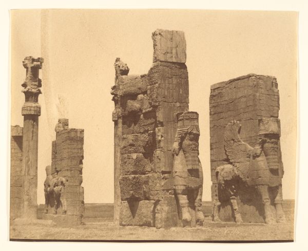 Luigi Pesce made this albumen silver print of the Gate of All Nations at Persepolis sometime in the mid-19th century. Here we see the crumbling remains of what was once a majestic entrance to the ancient city of Persepolis, built by the Persian Achaemenid Empire. Pesce’s photograph captures not just the physical remnants, but also the weight of history and the passage of time. In 19th-century Iran, photography was becoming a tool for documentation, as well as a means of asserting cultural identity in the face of increasing European influence. The ruins of Persepolis served as a potent symbol of past glory and national pride. Understanding the social and institutional context of this image requires considering the role of photography in shaping perceptions of ancient civilizations. Scholars and historians delve into archives, travelogues, and archaeological reports to understand the significance of such images. This photograph serves as a reminder that art is embedded in specific social and institutional contexts.