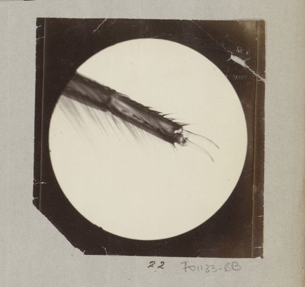 Curator: Welcome. We’re standing before “Microscopische opname van schubben van een vlindervleugel, 350 keer vergroot,” or “Microscopic image of scales of a butterfly wing, magnified 350 times,” by Marinus Pieter Filbri. This gelatin silver print dates from around 1887-1888. Editor: It has an alien feel about it, almost gothic. Like some unearthed artifact, despite its ostensibly scientific purpose. The greyscale and stark contrast create a somewhat somber mood. Curator: That interplay between scientific exploration and artistic rendering is what intrigues me most. Think about the social context; microscopy was becoming more accessible, fueling scientific curiosity and even spectacle. Editor: Right. It reflects a cultural fascination with revealing hidden worlds. We often celebrate science as objective, but this work betrays the hand of the artist, a selection and framing of reality. Consider the power dynamic inherent in observing something so closely. Curator: Absolutely. And Filbri was not simply recording; the deliberate composition transforms what could be a dry record into a study of form and light. Realism becomes abstracted through the lens. Editor: Which, historically, opens fascinating avenues when you consider it intersects with the time where debates around the societal "usefulness" and moral panics over artistic license where rampant. This photograph could either become scientific visual support, a still life capturing a form or it can transform into "degenerate art", something the establishment may have deemed “dangerous”. Curator: True. Photography's place in the artistic hierarchy was also contested then, wasn’t it? Images like this complicated that discussion, challenging notions of authorship and representation. And consider how such technology made nature suddenly open for all to explore and see from any viewpoint. Editor: So while we acknowledge that, looking at it today in our contemporary landscape, this image could very easily speak to themes of fragility, the beauty of natural architecture, perhaps even the precarity of the insect world within our current climate crisis. It has such enduring impact, wouldn't you agree? Curator: Yes, indeed. I’m reminded again how art transcends its initial purpose, how history provides multiple lenses through which to consider its meaning. Editor: Well, its certainly given me lots to consider! Thanks!