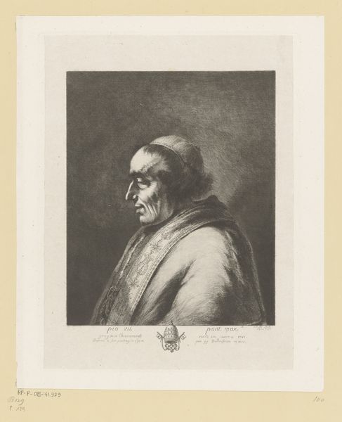 Curator: We're looking at a drawing titled "Portret van Quinten Massijs," created in 1840 using pencil. The artist is Felix Bogaerts. What strikes you first about this work? Editor: It has a very quiet solemnity about it. The grayscale emphasizes the subject's strong, stoic features, that cap...and the material, which seems like paper, has a fragile nature, don't you agree? Curator: Massys was a very influential Renaissance painter from Antwerp. In that cap, his expression certainly transmits self-possession but also great creative sensitivity. You can imagine him in his studio immersed in creative processes, and even conveying hidden meanings in plain sight... Editor: Absolutely, the detail around the eye area is fascinating! Bogaerts has really captured a complex depth of thought and emotion using relatively simple linear strokes, that is impressive, but the hat and its construction are so...stiff? I can´t really grasp it in the artistic intention Curator: That cap style might point toward an intellectual or artistic role, a cultural marker of his time. It can also mean freedom...thinkers needed to feel free. Beyond its pure function as headwear, the shape echoes social norms and aspirations too... Editor: You are absolutely right...From my perspective as a Formalist, it also works with the draping of the clothing to frame the face as the clear focal point of the entire composition. Bogaerts very intentionally centers the attention there! Curator: Right, he invites us to consider Massys not only as an individual, but as a carrier of Renaissance values and the growing importance of the artistic intellectual. Editor: Looking closely and sharing these reflections about technique, symbolism, and expression has certainly enriched the quiet experience the artwork sparked at first glance! Curator: Agreed! It serves as a wonderful reminder that behind every portrait lies an intricate network of meanings, just waiting to be deciphered across time.
