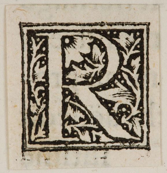 Curator: This intriguing piece from the Harvard Art Museums is simply titled "Letter P", crafted by an anonymous hand. Editor: My first impression is its graphic boldness—a stark contrast of black and white, evoking a sense of archaic power. Curator: It’s fascinating to consider how such a small, functional object—likely a printer's block—participated in the larger historical project of disseminating information. Editor: Absolutely, and the ornate details speak volumes about identity. Who had access to literacy, to printed material? The letter isn't just a letter, it's a symbol of privilege. Curator: Precisely. The surrounding ornamentation, seemingly mere decoration, reinforces social hierarchies embedded within the act of reading itself. Editor: Looking at it now, I find myself drawn to the idea of how something so small held the ability to construct meaning and influence entire populations. Curator: Indeed. A powerful reminder that even the smallest artifacts hold within them vast cultural and historical narratives.