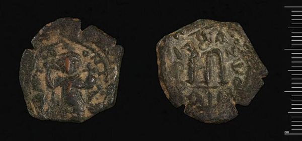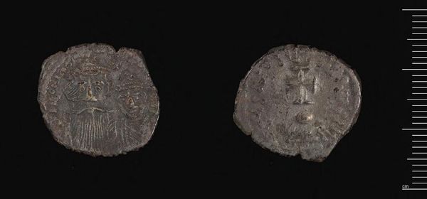 Editor: This is a coin of Herakleios by Abd-al-Malik from the Umayyad Dynasty. The material is fascinating - a glimpse into a specific economic system. How would you interpret the coin's value as a commodity and a historical artifact? Curator: It's tempting to see this coin solely as currency, but I urge you to consider the labor and resources invested in its creation. The mining of the metal, the artistry of the die-cutter, and the political power asserted in its iconography reveal the social forces at play. How did it function in the economic and social life of its time? Editor: So you're suggesting we look beyond its face value to understand the complex web of production and power? Curator: Exactly. Its creation and circulation were deeply embedded in material realities that shaped the lives of individuals and empires. Examining this coin from a materialist perspective allows us to appreciate its significance beyond its monetary worth. Editor: That gives me a lot to think about! Thanks.