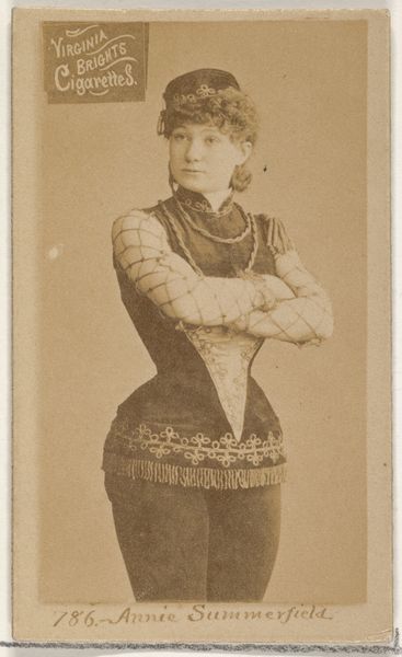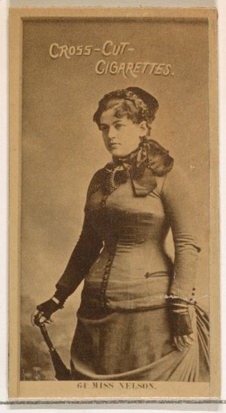 This is Card Number 54, Miss Lowe, from the Actors and Actresses series, printed by W. Duke, Sons & Co. at the turn of the century. It's a lithograph, one of many that were included in packets of Cross Cut Cigarettes. The card's sepia tones and flat surface are products of the printing process. Lithography allowed for mass production, fitting with the mass consumption of goods like cigarettes. But the image also reflects a hierarchy. Here we have the actress Miss Lowe, posing in what was likely an elaborate studio setting. This image would have required labor too – photographers, printers, factory workers to assemble the cigarette packs, distributors, and vendors. What we see here is a complex interplay of fame, commerce, and labor. While Miss Lowe enjoyed a certain status, her image became a commodity, reduced to a collectible included with a cheap, addictive product. The card challenges any clear distinction between high and low culture, or art and advertising. It is all of those things at once, a little card with big implications.