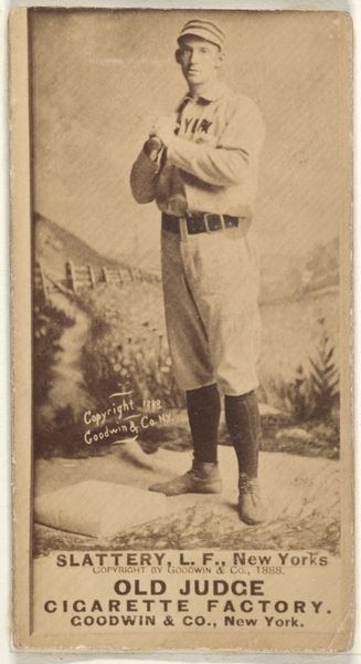 This albumen print of Ad Gumbert, a baseball pitcher for Chicago, was produced by Goodwin & Company as part of their Old Judge Cigarettes series. Here, photographic processes intersect with consumer culture. The print itself, made using a now-archaic method involving light-sensitive chemicals and egg whites, speaks to a particular moment in the history of mass media. Though each card appears simple, consider the labor involved, from the photographers to the factory workers assembling the cigarettes. The sepia tones and the careful posing of Gumbert give it a veneer of respectability, yet it was, in fact, a promotional tool, literally packaged with addictive substances. These cards weren't just about baseball; they were about branding, about aligning a product with the all-American image of sports heroes. By understanding the context of its production, we can see this image as more than just a portrait of an athlete, but as a fascinating artifact of industrial America.