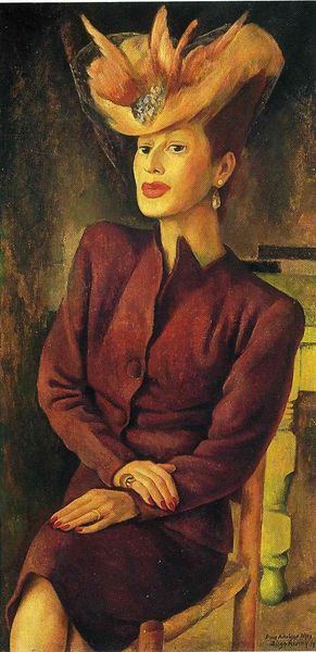 Diego Rivera's portrait of Evangelina Rivas de De la Chica, or The Lady from Oaxaca, is a painting with such a direct and honest style of painting. Rivera's application of color, particularly in the rendering of Evangelina's dress, feels very process-oriented, like he's layering hues and tones to build depth. The material aspects of this piece are really interesting. You've got this combination of thin, almost translucent washes, especially in the shawl, contrasting with more opaque areas. The flowers on the dress are so striking! Each petal and leaf feels almost modular, as if Rivera is building up this image with basic shapes, making each form comprehensible. The woman in the painting is facing slightly to the left, which gives the picture an off-kilter feel. Rivera's painting reminds me of the work of Henri Matisse because it is bold and uses very stylized forms. Like his work, this portrait plays with form and color to create something beyond representation.