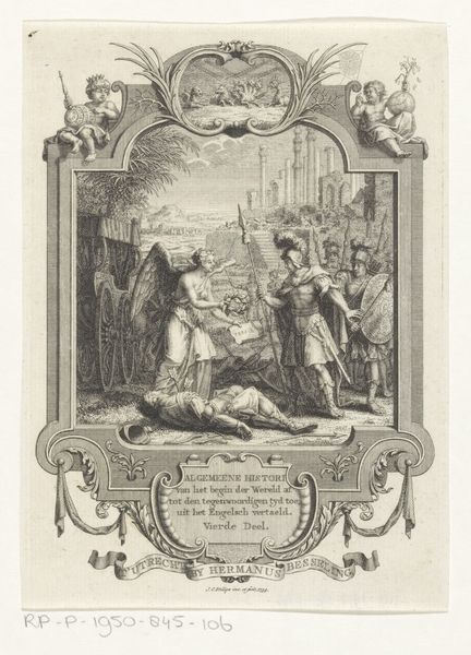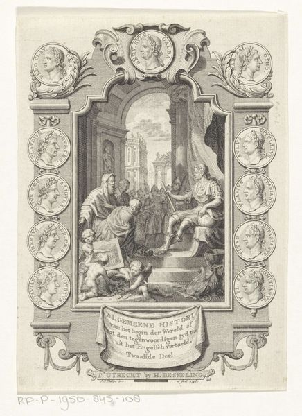 This print, made by Jan Caspar Philips around 1700, is an etching – a process that uses acid to cut lines into a metal plate, which is then inked and printed. Though seemingly worlds away from modern modes of production, etching was in its day a thoroughly industrial technique, requiring specialized workshops, skilled labor, and a market for the final product. Look closely and you'll see how the crisp lines of the etching lend themselves to a highly detailed, allegorical scene about the history of Etruria. The sharp contrast and fine textures are a direct result of the etching process, where the artist could control the depth and thickness of each line. This demanded a high degree of skill and precision. The print was made as part of a larger bookmaking enterprise. This speaks to a world where art was increasingly integrated into broader systems of knowledge production and distribution. So, while seemingly a world apart from our own, Philips’ print is actually deeply embedded in the social and economic currents of its time, reflecting the rise of both print culture and capitalism.