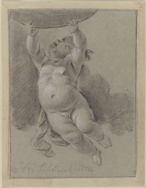 Pieter Pickaert created this print, "Naakt kind en een hondje," using etching, a printmaking technique, sometime between the late 17th and early 18th centuries. The etching process involves coating a metal plate with a waxy, acid-resistant substance. The artist then scratches an image into this coating, exposing the metal beneath. When the plate is submerged in acid, the exposed lines are eaten away, creating grooves. Ink is then applied to the plate, filling these grooves, and the surface is wiped clean. Finally, the plate is pressed onto paper, transferring the inked image. Here, Pickaert harnesses the subtle tonal variations achievable through etching to depict the soft flesh of the child and the fur of the dog. The quality of the line speaks to the labor and skill of the artist, patiently working to capture the intimate moment between the figures. This work demonstrates how prints could achieve effects similar to painting, blurring the lines between reproductive and original art forms.