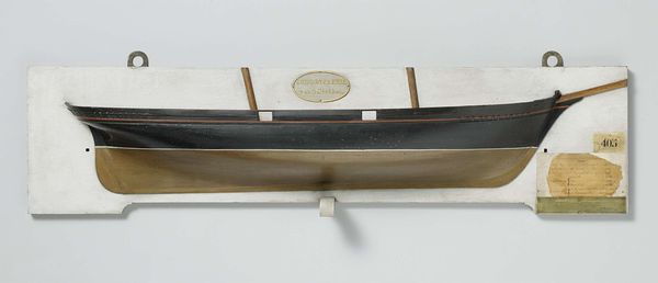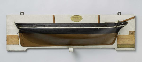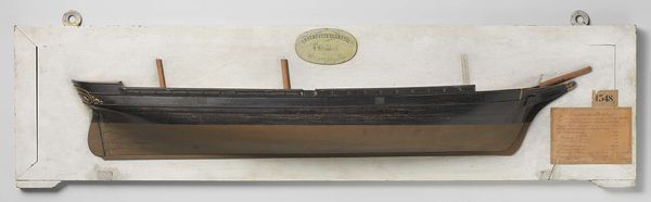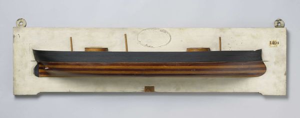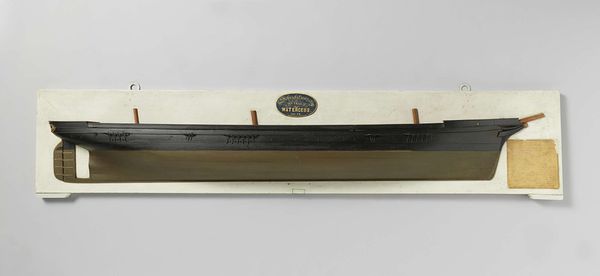 Curator: This is a "Half Model of a Screw Steamer," crafted from wood between 1857 and 1860 by Rijkswerf Amsterdam. It exemplifies a wonderful combination of sculpture and realistic design. What are your initial thoughts? Editor: It’s immediately striking—stark in its presentation, but elegant. There is an industrial coldness to it as well, maybe representing labor under modernization, a society in transition. The use of only a few tones accentuates the geometry. Curator: Precisely! Focusing on materiality, we see how the artist manipulated the wood to capture the vessel's sleek design. Consider the societal conditions: these models would be crucial for shipbuilders—communicating a vision that will soon carry labor and cargo across water. Editor: And we cannot ignore the era! The mid-19th century was ripe with technological and colonial advancement, facilitated through ships like this. To discuss production then demands reflection upon broader societal and political landscapes defined by power dynamics, trade routes and, the realities of who gained and lost within it. Curator: Absolutely. The very creation and consumption of the Screw Steamer highlight the complex nexus of social change—capitalism, industrialism, colonialism all wrapped up in its timber bones! It also speaks to skill. Look at how a utilitarian object, the wood, transcends to become, in part, art! Editor: Indeed, it demands we acknowledge the often unrecognized craftsmanship inherent in its making—it is labor refined into aesthetic expression that is easily glossed over. Furthermore, considering its period we need to acknowledge how gender was involved: Did it create opportunities? Or reproduce existing power structures? Curator: Good question—likely a reproduction of structure. We see now not only craft but history, and economics… a complex layering that reveals a lot about the nineteenth century's means, motivations, and ambitions. Editor: I appreciate how exploring its origins helps unearth so much; it challenges my perspectives about not just art but broader humanity. Curator: Agreed. The blend of precision and practicality, I find, brings together multiple facets of this intriguing period. Editor: And prompts continued critical exploration. Thank you.